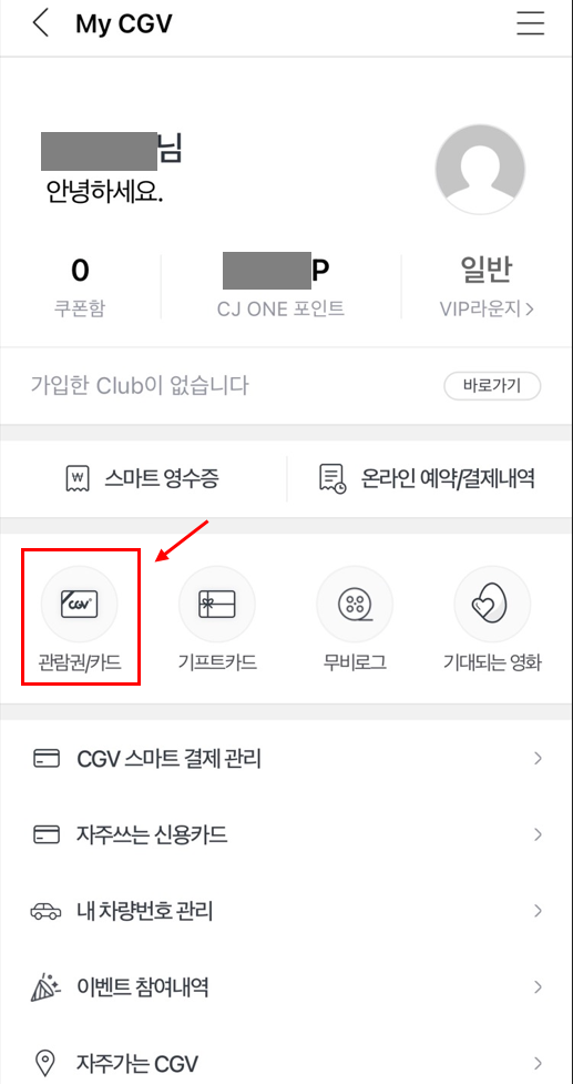'관람권/카드'를 눌러줍니다.