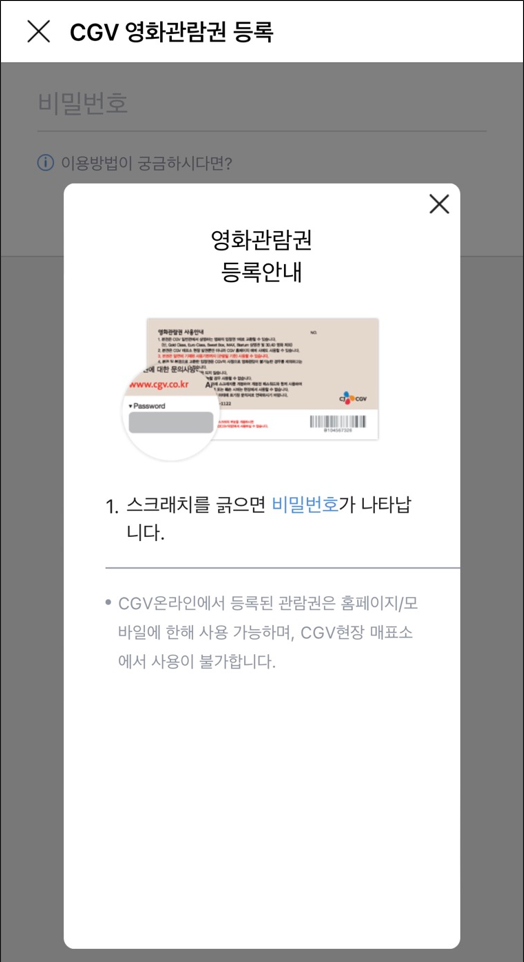 아래와 같이 '영화관람권 등록안내'를 보실 수 있습니다.