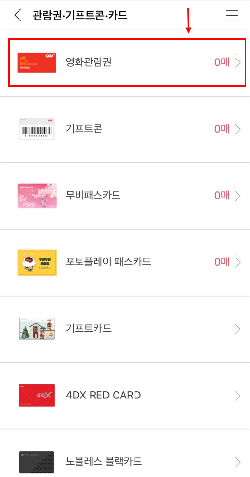 '영화 관람권'을 눌러줍니다.