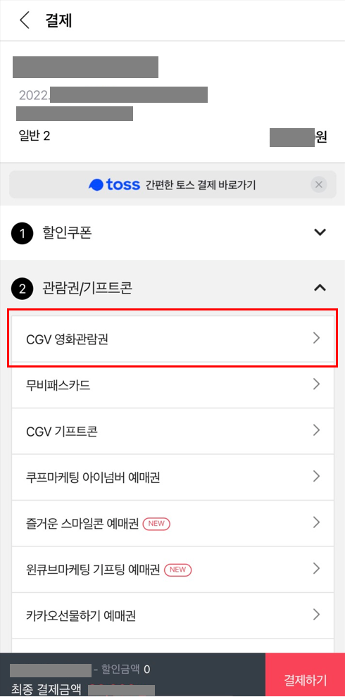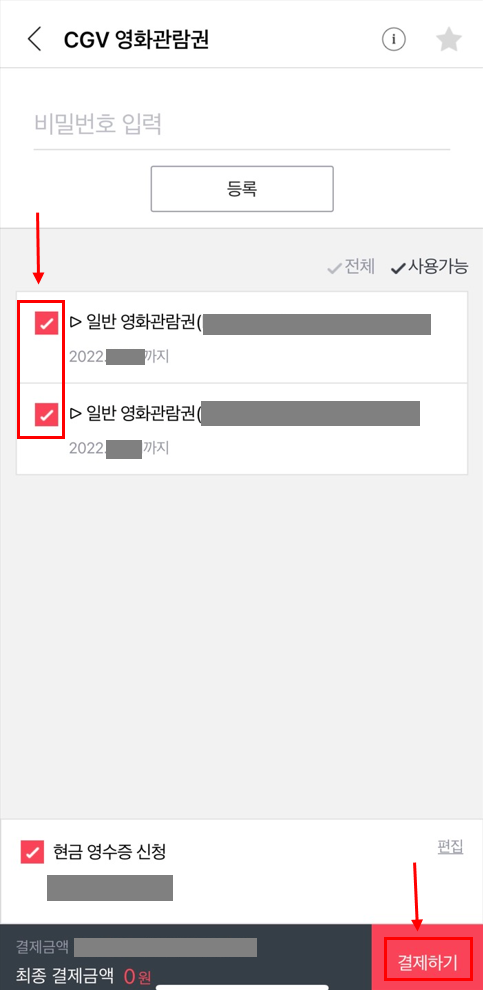 CGV 관람권 등록 및 결제하는 방법