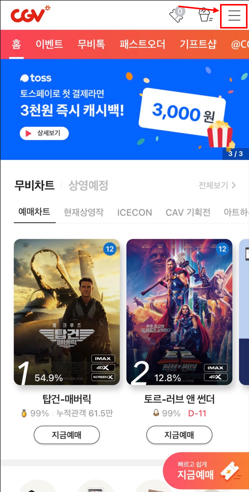 일단 CGV 앱에 접속합니다.