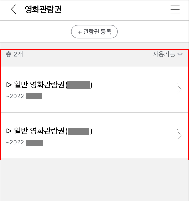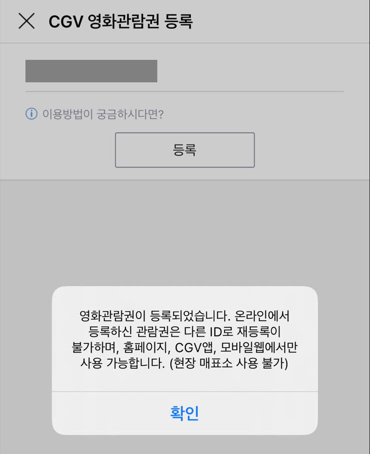 영화 관람권 등록이 완료되면