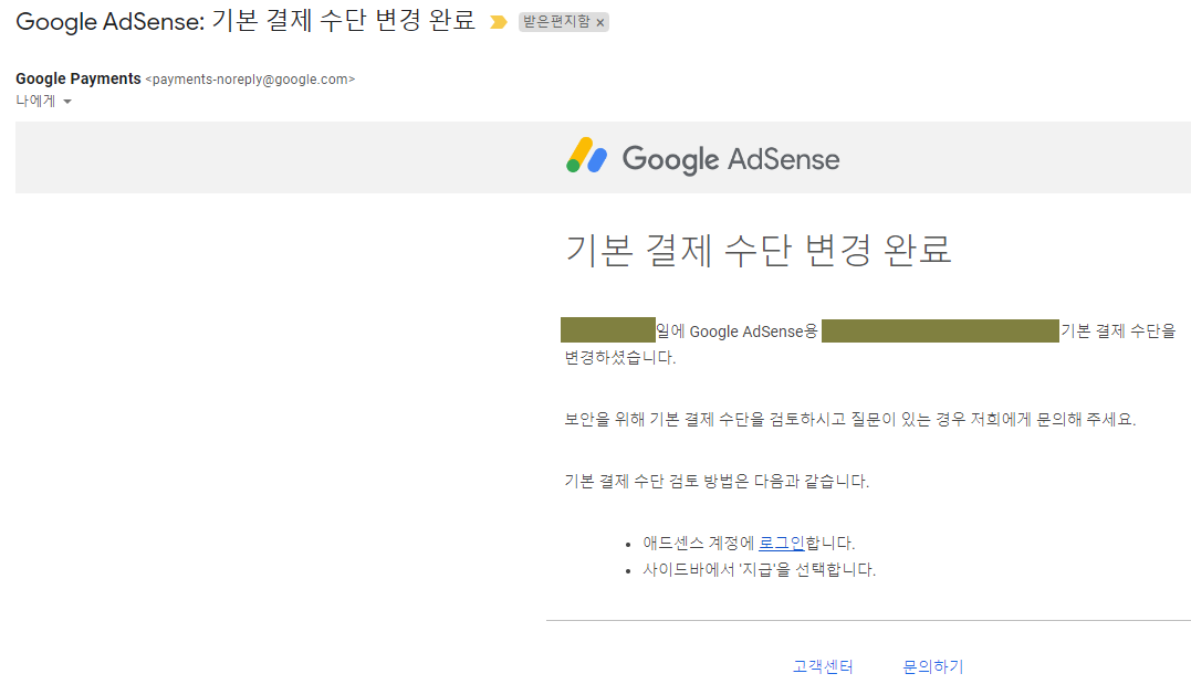 또 아래와 같이 구글 애드센스로부터 이메일도 받게됩니다.
