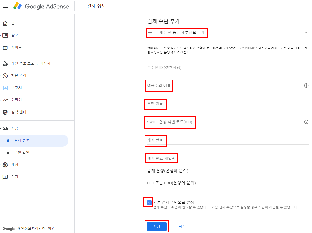 구글 애드센스에 결제 정보를 등록했습니다!!!