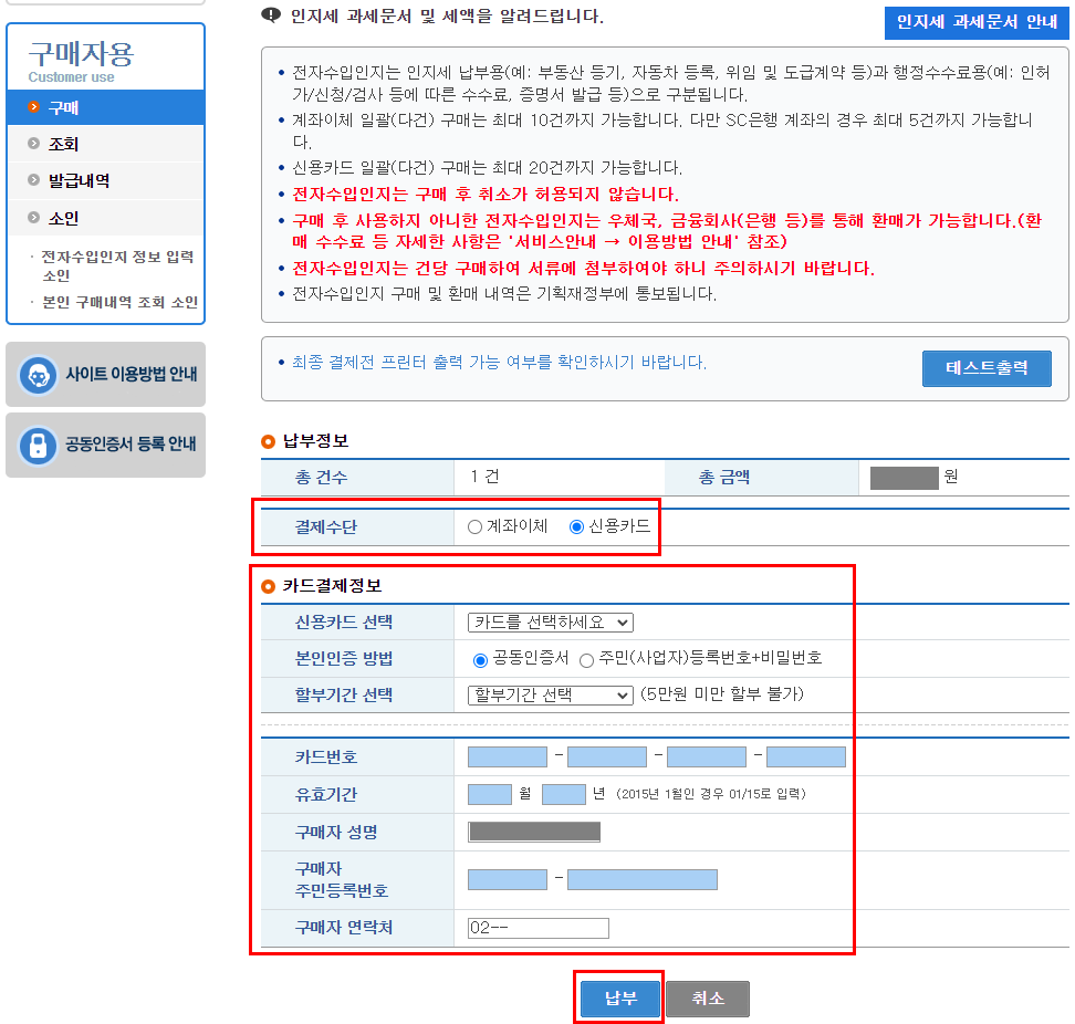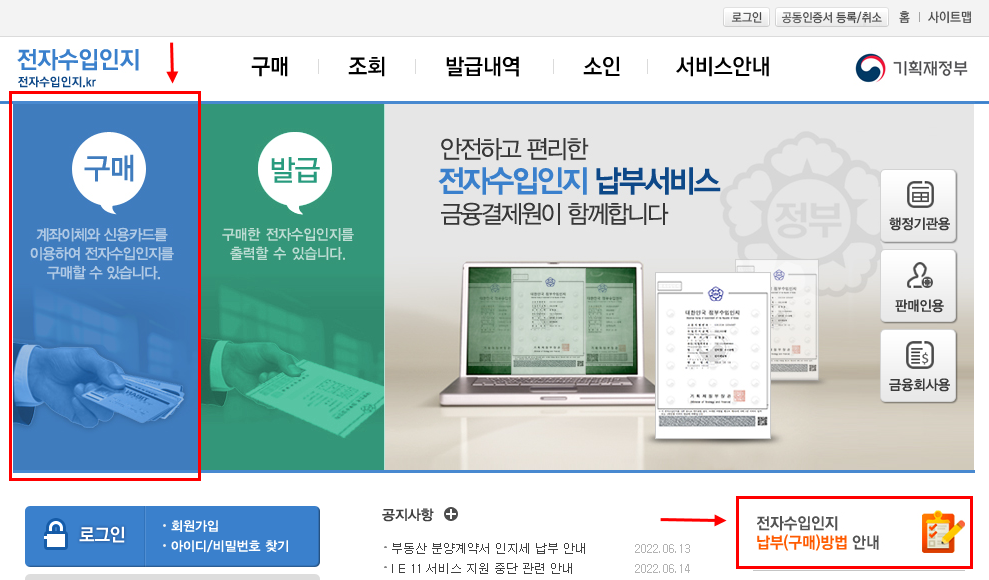 전자수입인지 구매하는 방법