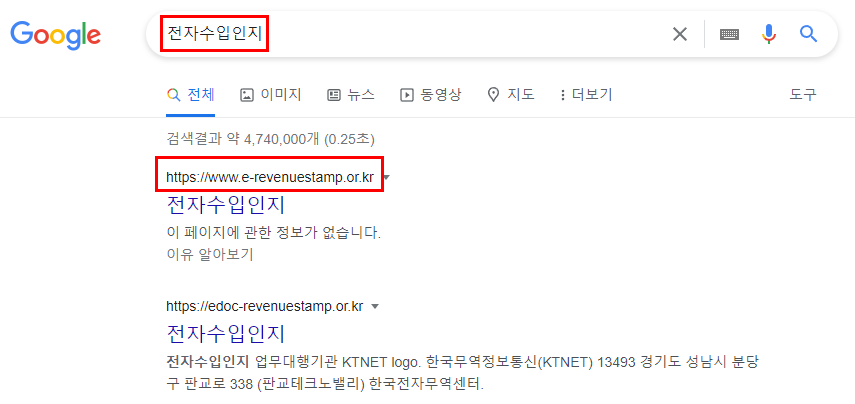 검색 사이트에서 '전자수입인지'를 검색하거나