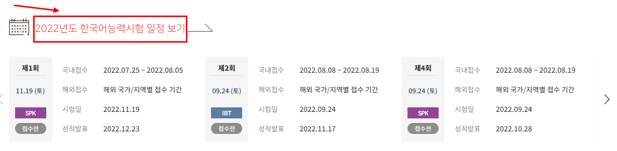 '2022년도 한국어능력시험 일정보기'를 클릭해줍니다.