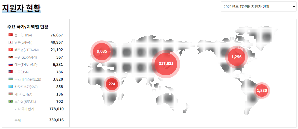 주요 국가/지역별 토픽 시험 지원자 현황입니다.