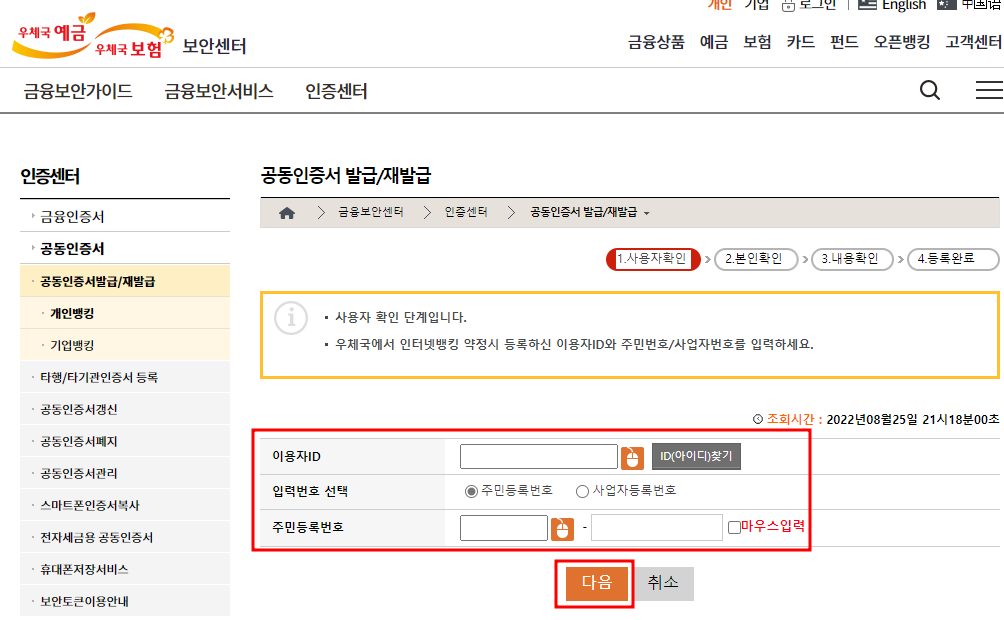 3. 이용자 ID, 주민등록번호(외국인등록번호) 입력 후