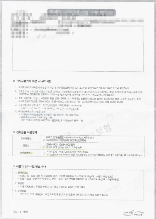 '우체국 전자금융거래 신청 확인서'를 받아왔어요~