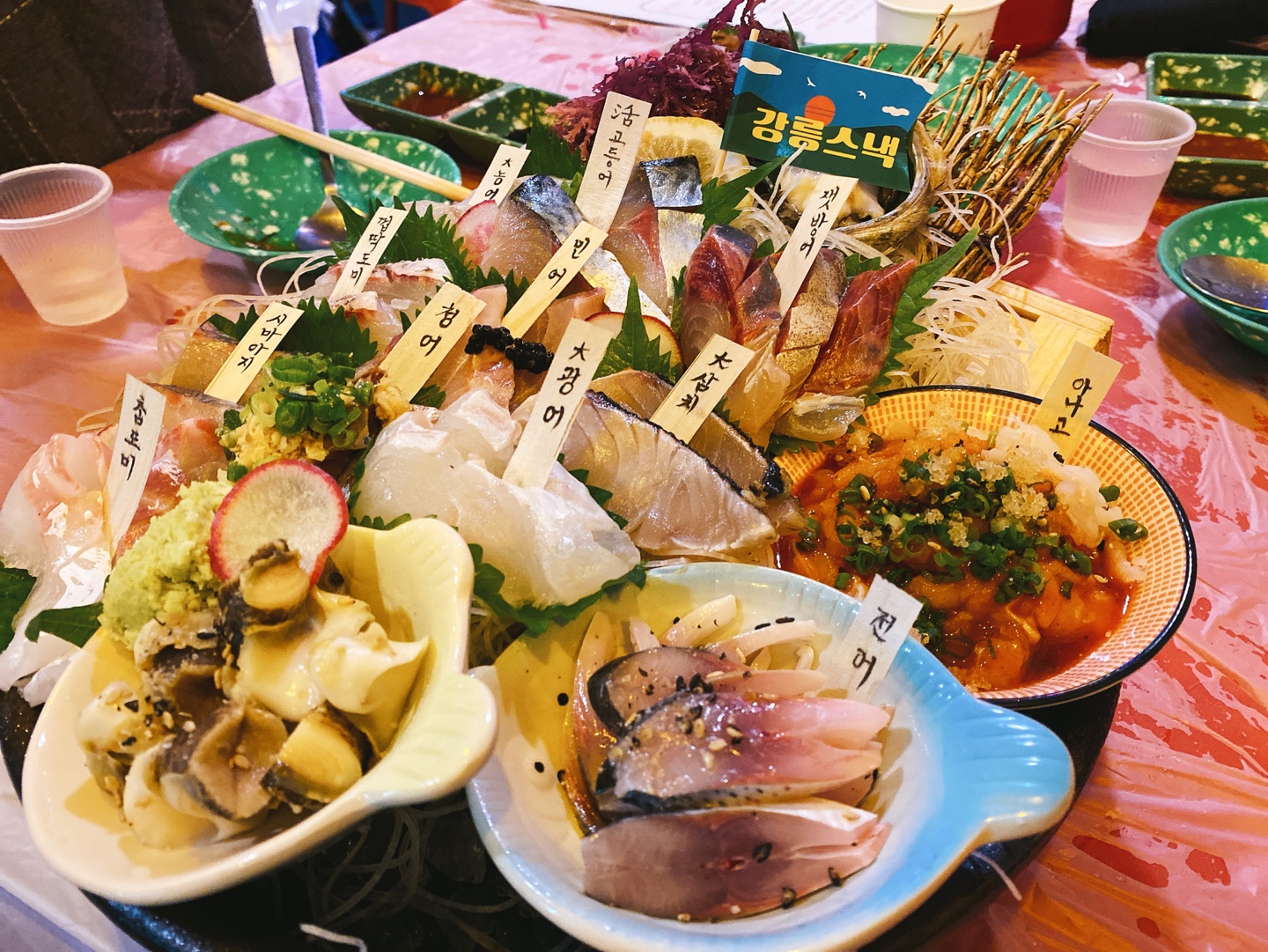 산지직송모듬회(70,000원), 강릉 해물 라면(9,000원), 소주 3병 시켜서 먹었고