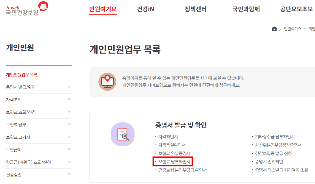 안녕하세요~ 오늘은 국민건강보험 웹사이트에서 '보험료납부 확인서'를 발급하는 방법에 대해 나눠보고자 합니다.
