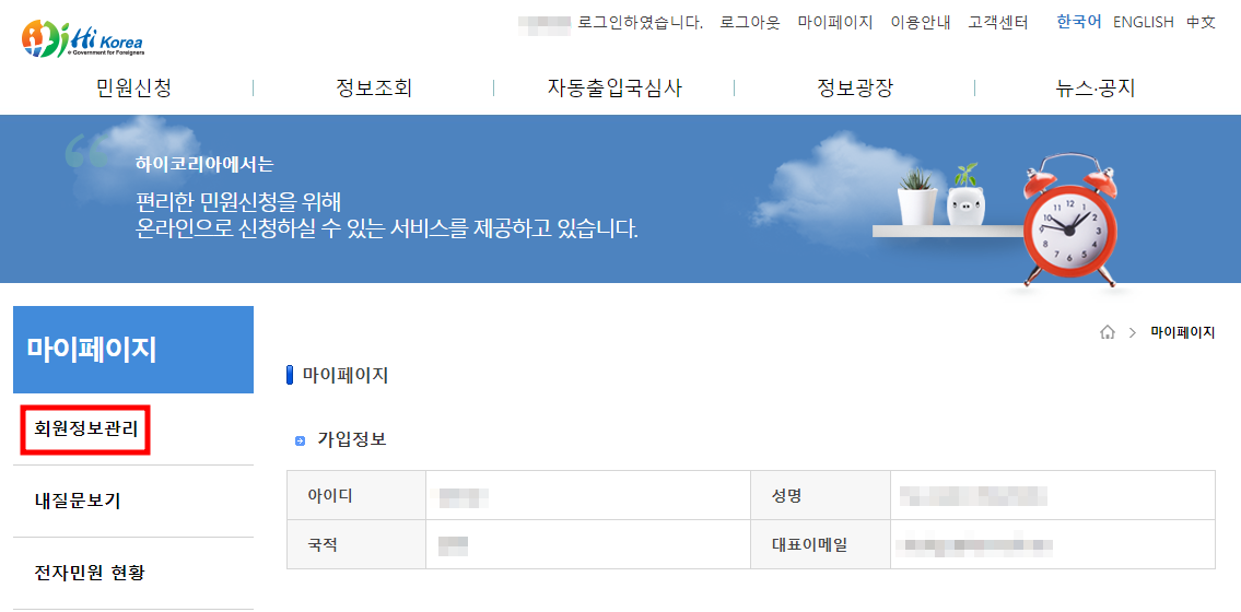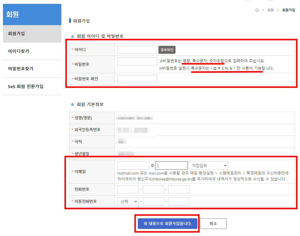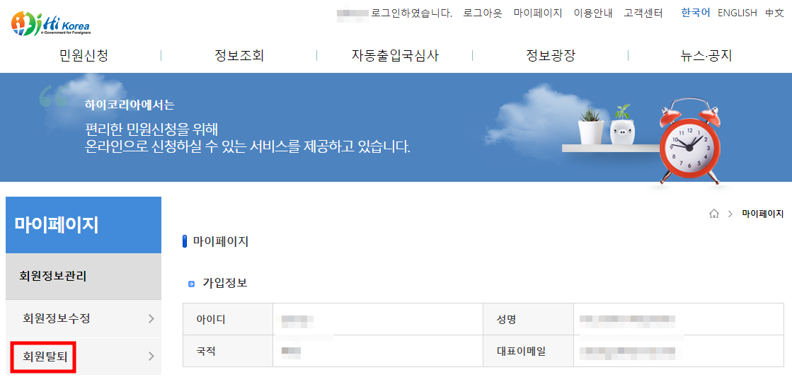 [하이코리아] 회원 가입(등록외국인) 및 회원 탈퇴 방법