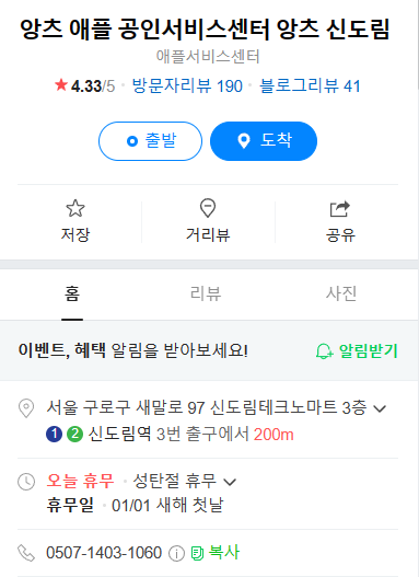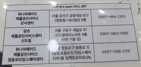 직원분께서 주변 공식 Apple 서비스 센터를 알려주셔서 양츠 애플공인서비스센터 신도림으로 방문하였답니다.