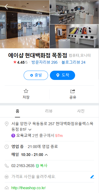 결국 근처에 있는 에이샵 현대백화점 목동점에 가서 물어봤는데 그곳에서는 AS 업무는 하지 않는다고 하더라고요 ㅠ