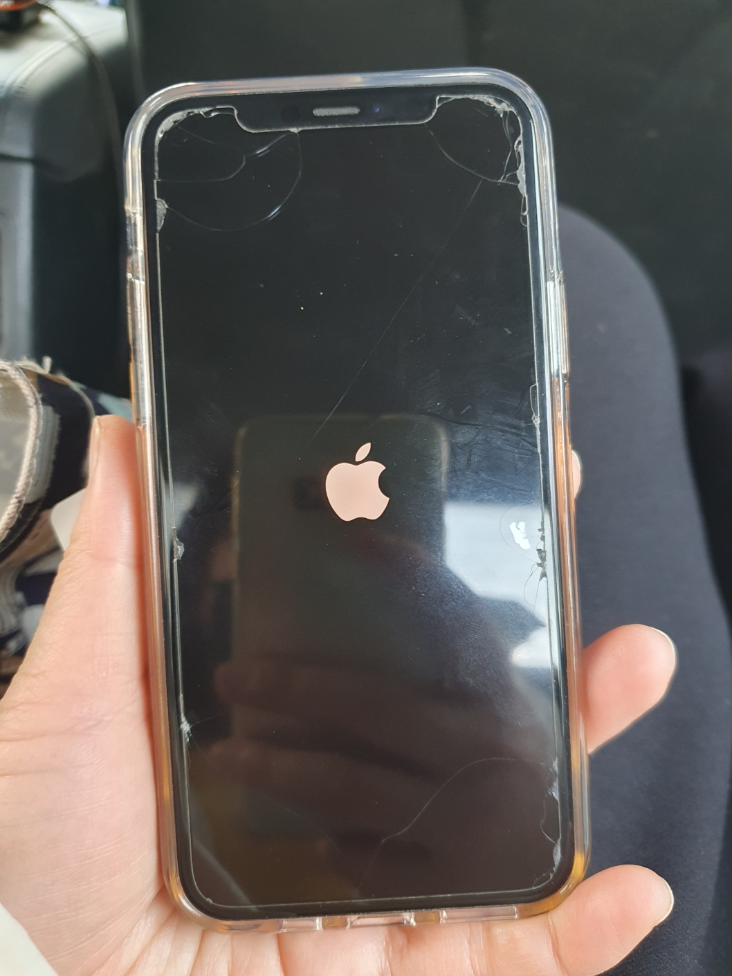 위 사진과 같이 애플 로고만 화면에 뜬 상태로 켜지지 않았어요. 많은 업무를 핸드폰을 통해서 하는터라, 정말 멘붕이 오더라구요. 최대한 빨리 해결을 해야해서 방법을 인터넷 검색을 통해 아이폰 강제로 재시동도 해봤는데 안되더라고요ㅠ