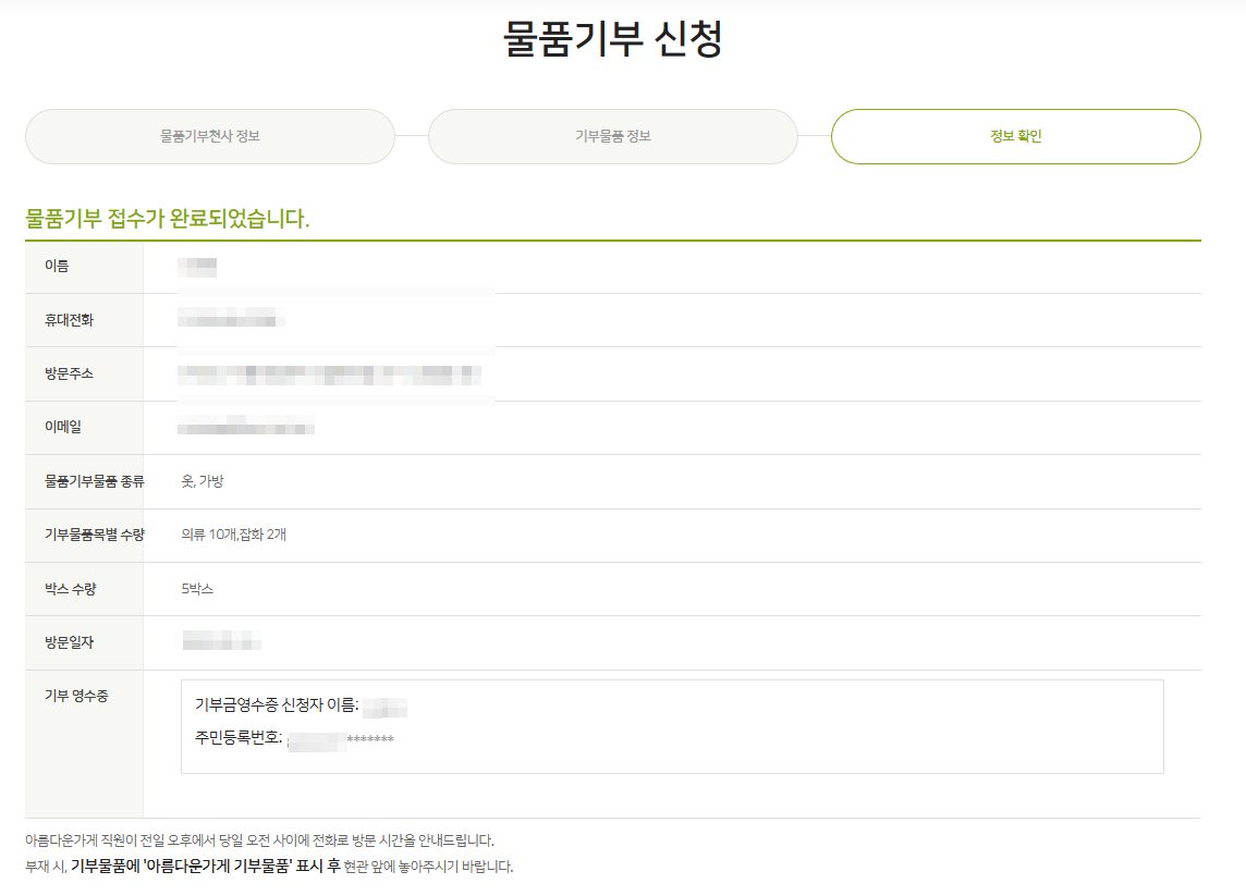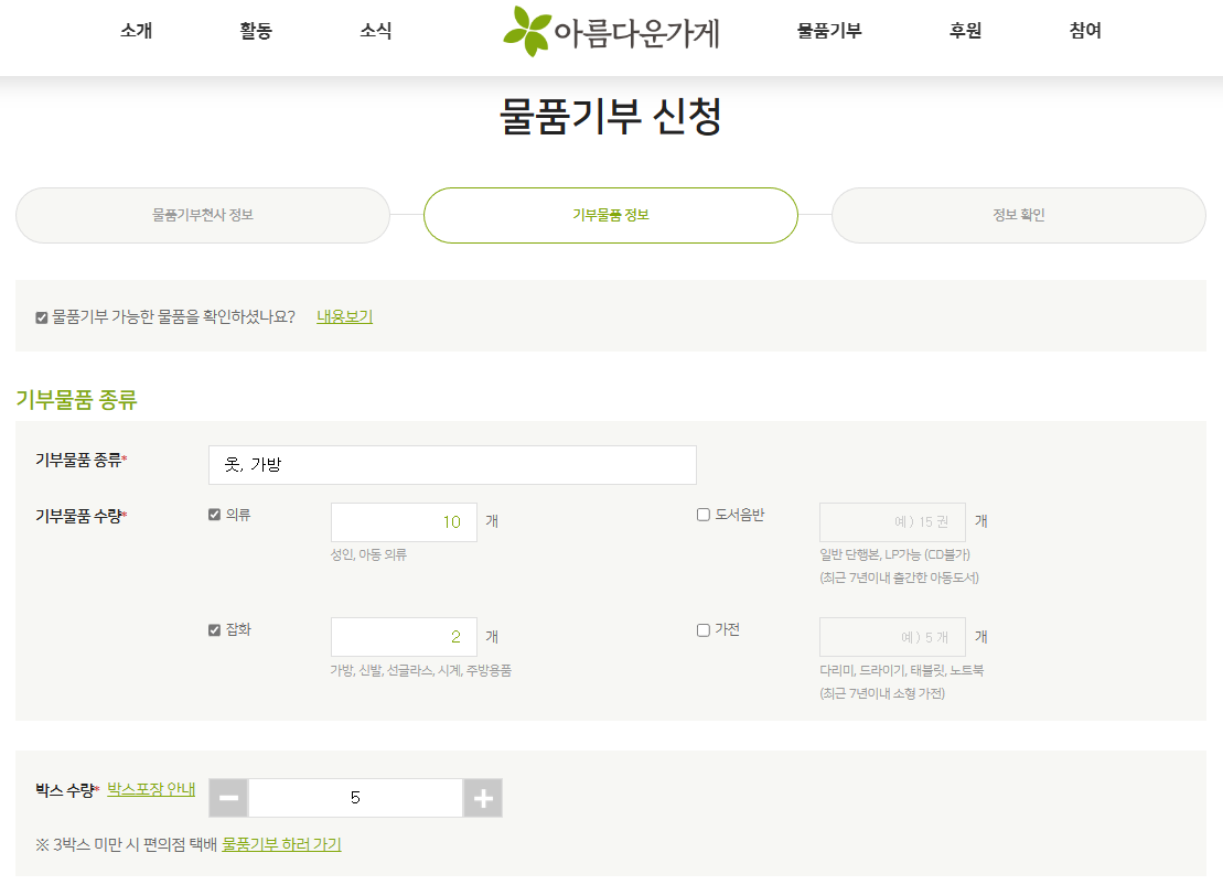 아름다운 가게에 기부 신청을 하였습니다.