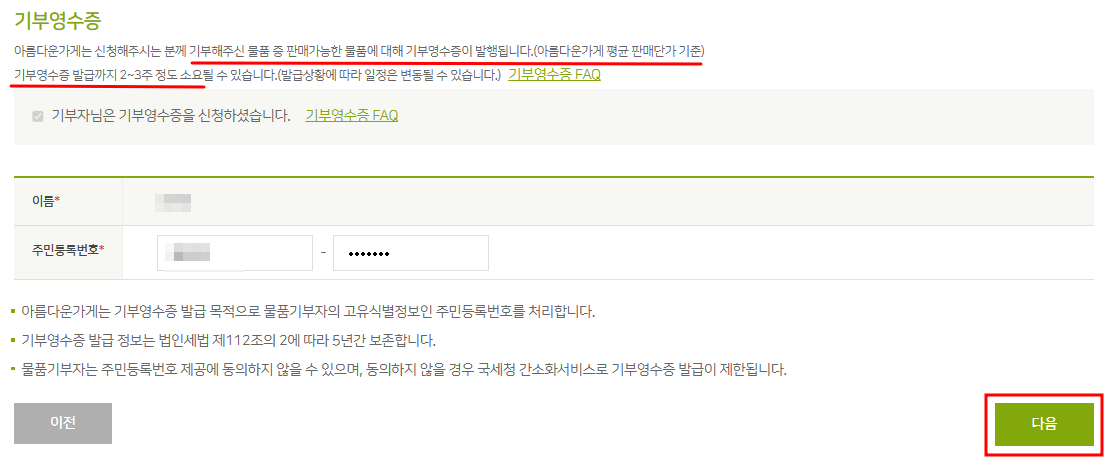 아름다운 가게 기부 / 기부금 영수증 발급
