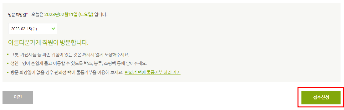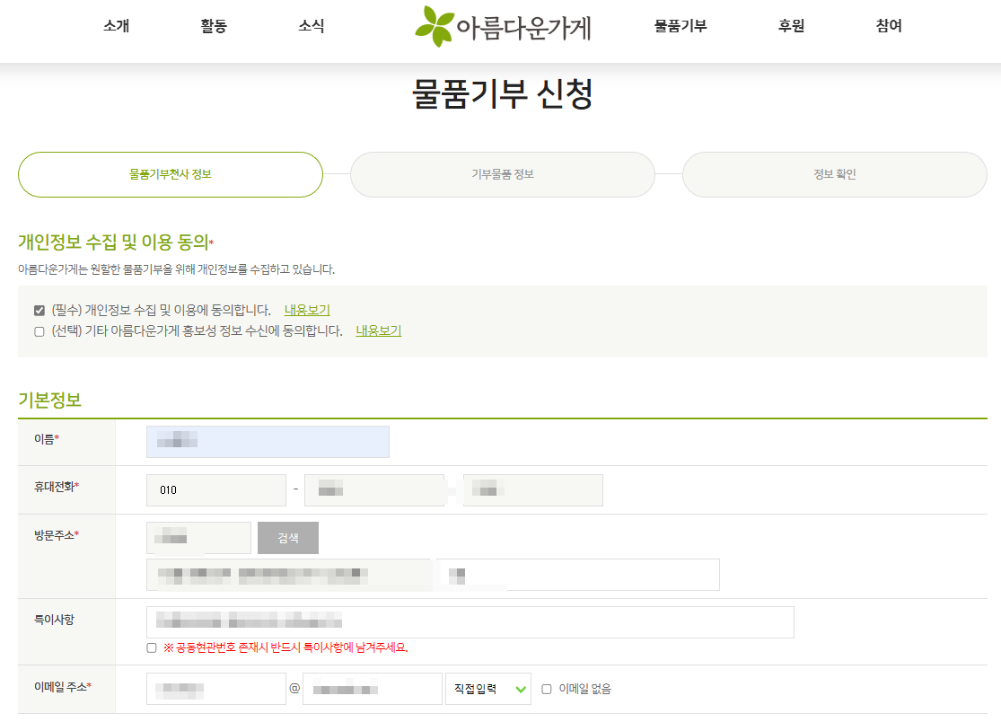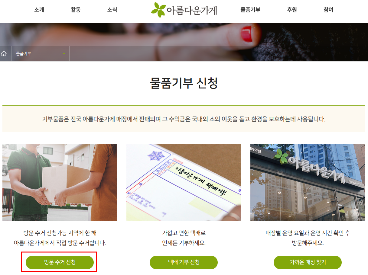 아름다운 가게 기부 신청 방법
