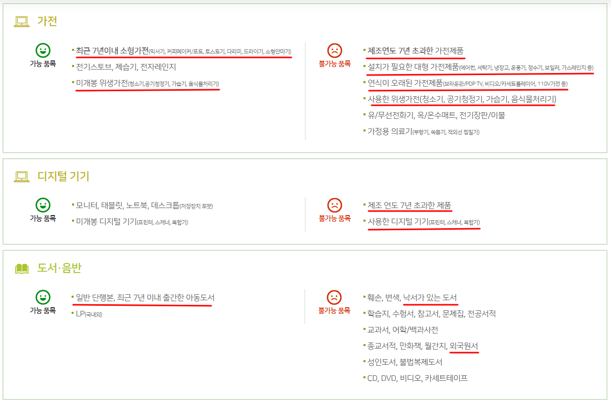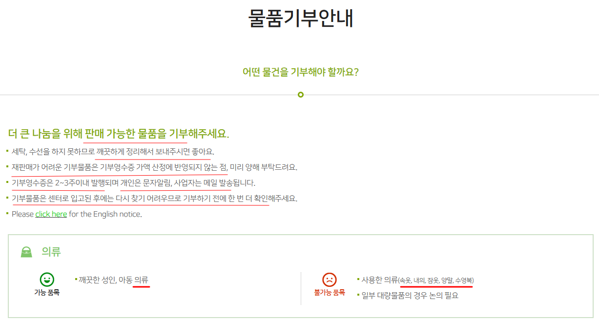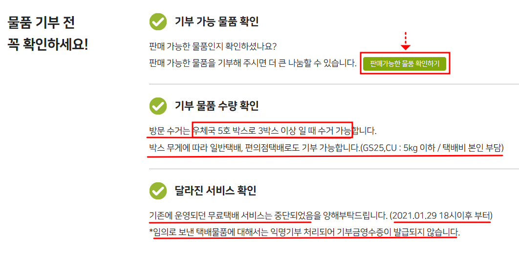 기부 가능한 품목과 불가능 품목을 확인했으면