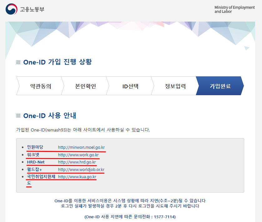 회원이 아닌 경우, 먼저 회원 가입을 진행해 줍니다. One - ID로 가입 시, 민원마당 / 워크넷 / HRD-Net / 월드잡 / 국민취업지원제도 사이트에서 사용하실 수 있습니다.