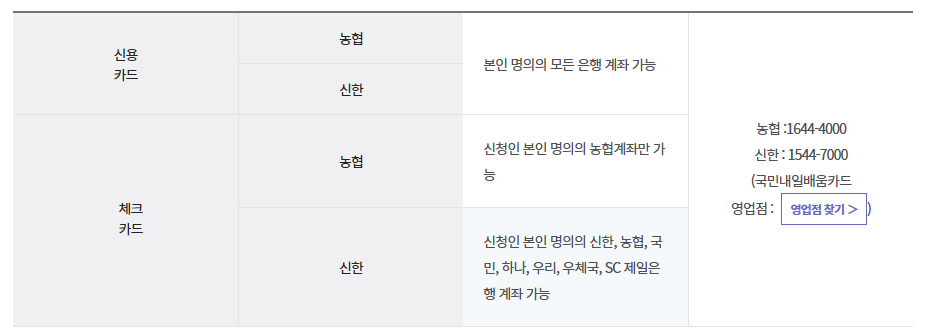 * NH농협카드의 체크카드를 신청하시는 경우 반드시 본인 명의의 농협계좌가 있어야만 합니다.