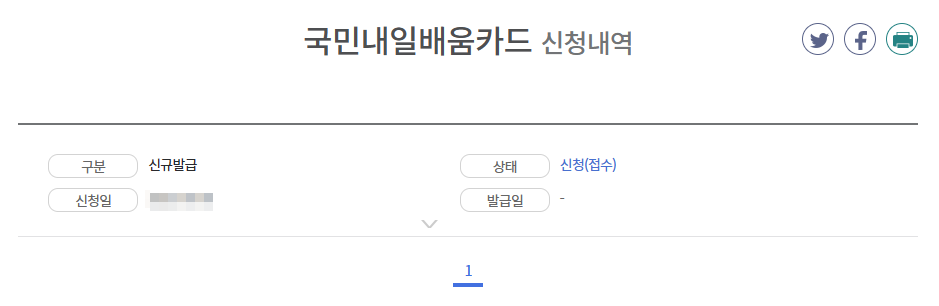 발급 신청을 완료하면 이렇게 국민 내일 배움 카드 신청 내역 확인이 가능합니다.