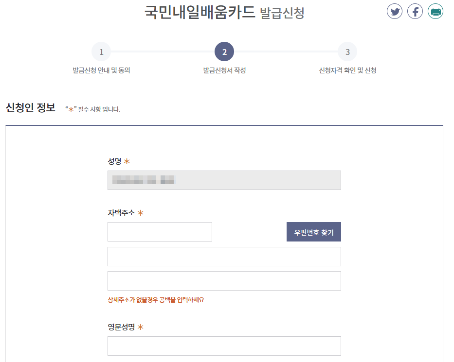 * 영문 성명은 카드 발급에 사용되니 정확한 영문명(여권상의 성명 등)으로 입력하여 주시기 바랍니다.