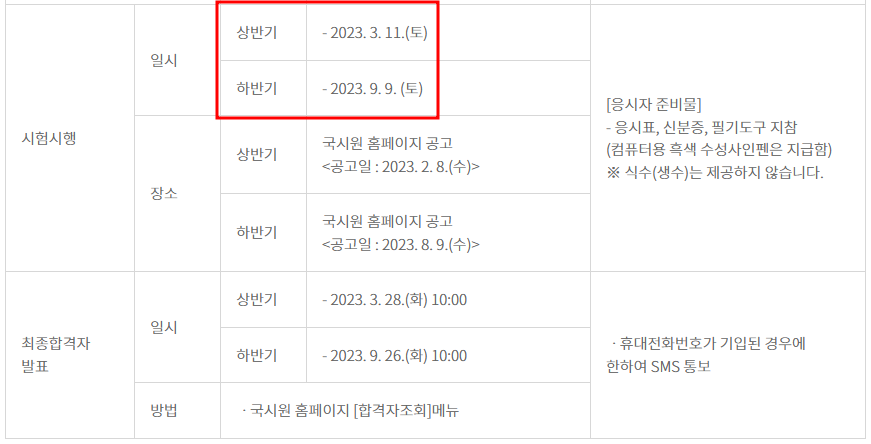 2023 시험 일정
