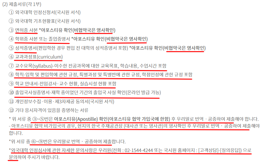 - 대학교 졸업자 : 대학교 졸업증명서 발급 → 번역, 대사관 또는 영사관 확인
