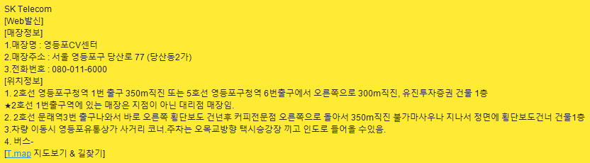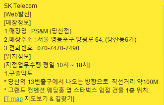 사용중인 핸드폰 114를 통해 문의를 했더니 제가 있는 지역을 확인 후 방문 가능한 지점을 문자로 보내주셨어요~