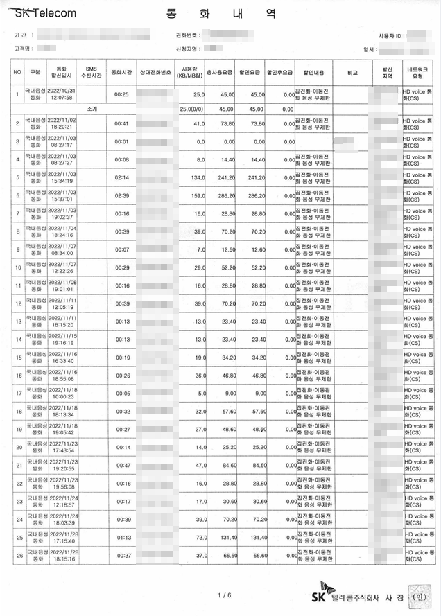 안녕하세요. 최근 개인적일 일로 통화내역 제출이 필요하여 발급을 받게 되었답니다.