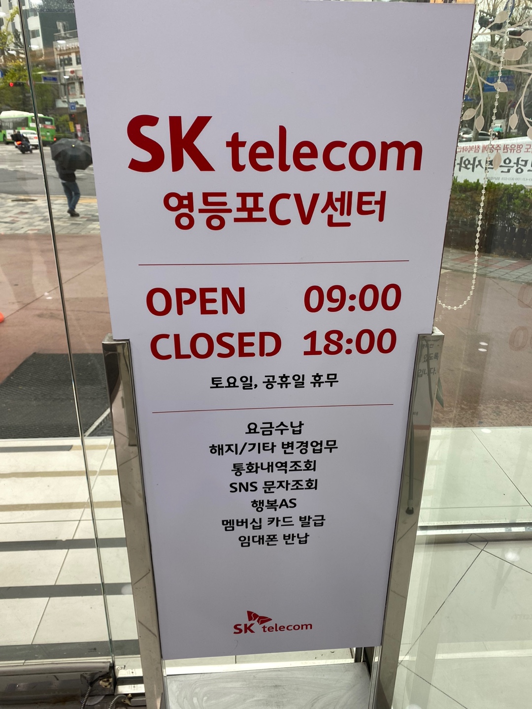 본인 방문시, 신분증과 핸드폰이 필요합니다. 평일 오전이라 그런지, 아니면 비가 와서 그런지 대기 없이 바로 업무를 볼수 있었어요~!