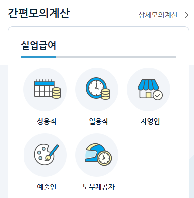 상용직, 일용직, 자영업, 예술인, 노무제공자에 따른 실업급여 간편 모의 계산은