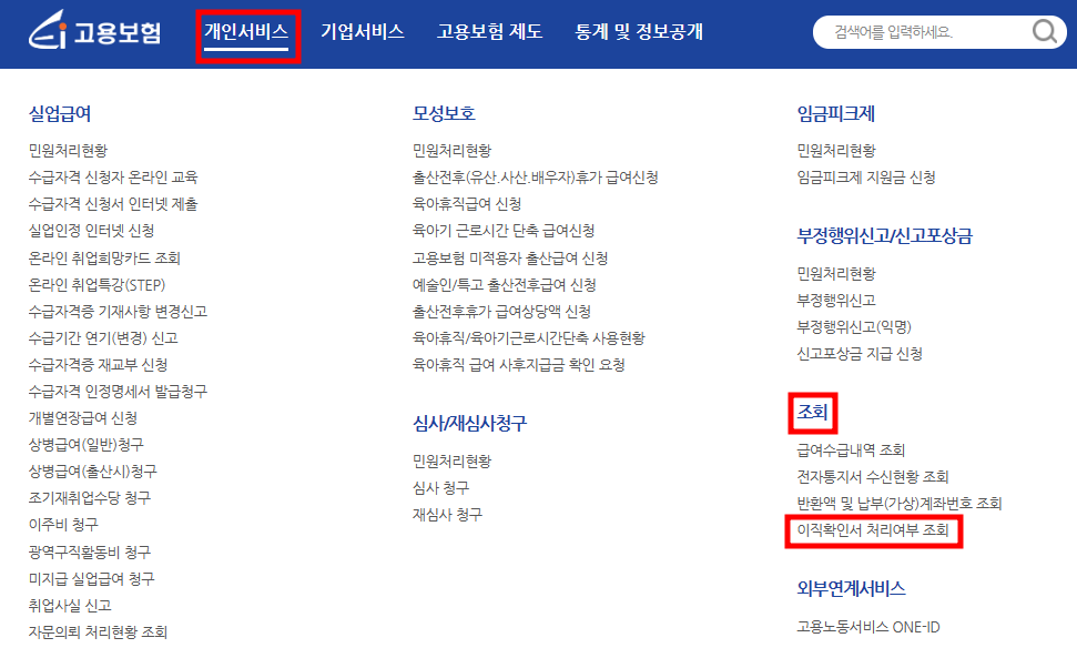 고용보험 사이트에 접속하여 '개인서비스'를 클릭하고 '조회'에서 '이직확인서 처리여부 조회'에서 처리상태가 '처리 완료'로 되어있는지 확인합니다. 또는 고용센터(1350)을 통해 유선상으로 확인도 가능합니다.