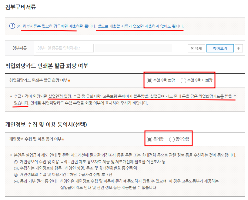 저희의 경우, 고용센터에 방문해서 구직등록을 먼저하고 고용보험 웹사이트에서 '수급자격 신청서 인터넷 제출'을 했더니 아래와 같이 진행 및 제출이 가능했답니다.