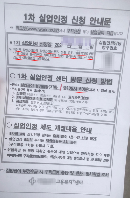 안녕하세요~! 이전 포스팅에서 고용센터에 방문하여 실업 급여 신청 후 '1차 실업인정 신청 안내문' 수령까지의 내용을 공유했었는데요. 이번 포스팅에서는 '1차 실업인정 신청'에 대해 이야기해