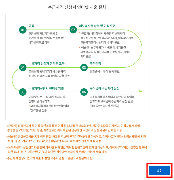 상실신고와 이직확인서 처리가 완료되었으면 근로자는 고용보험 웹사이트에서 '수급자격 신청자 온라인 교육(퇴사 전에도 수강 가능)'을 듣고 워크넷 웹사이트에서 구직 등록을 한 후, 고용센터에 수급자격 신청을 하면 되는데요. 고용센터에 제출할 '수급자격 신청서' 인터넷으로도 미리 제출은 가능하나 이후 고용센터 방문도 꼭 해야 합니다.