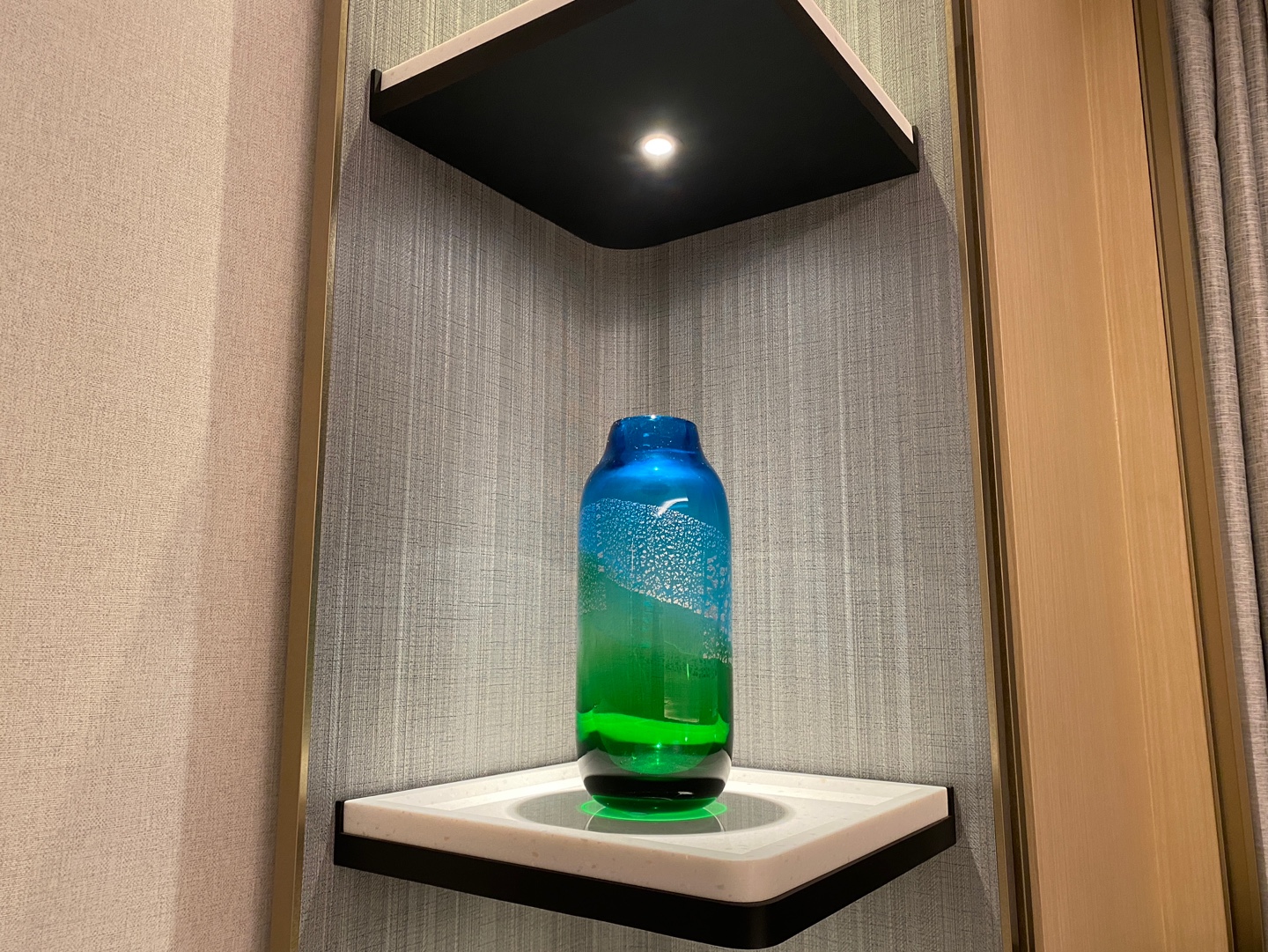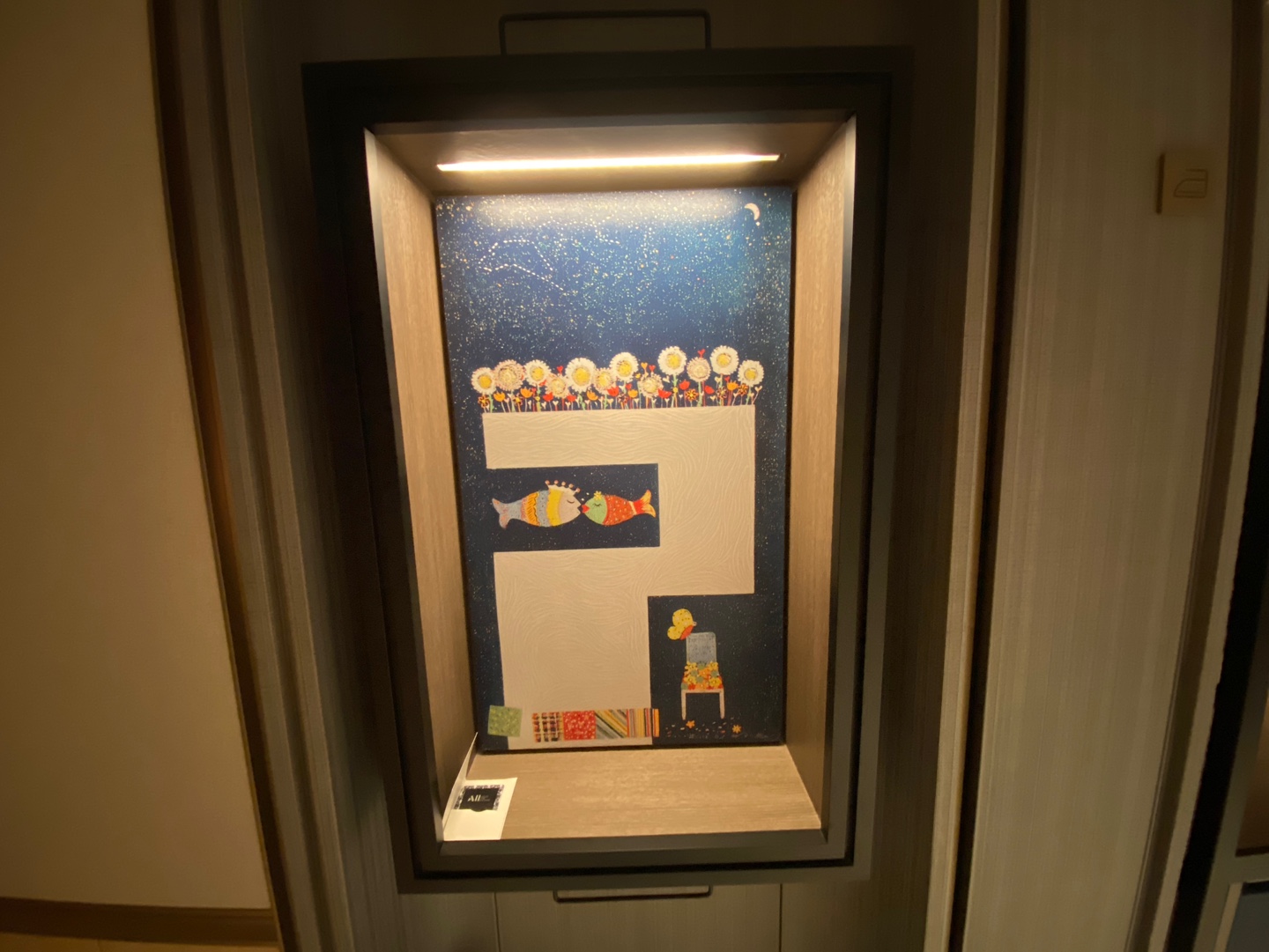 룸 안의 조명과 시계(블루투스 스피커) 등