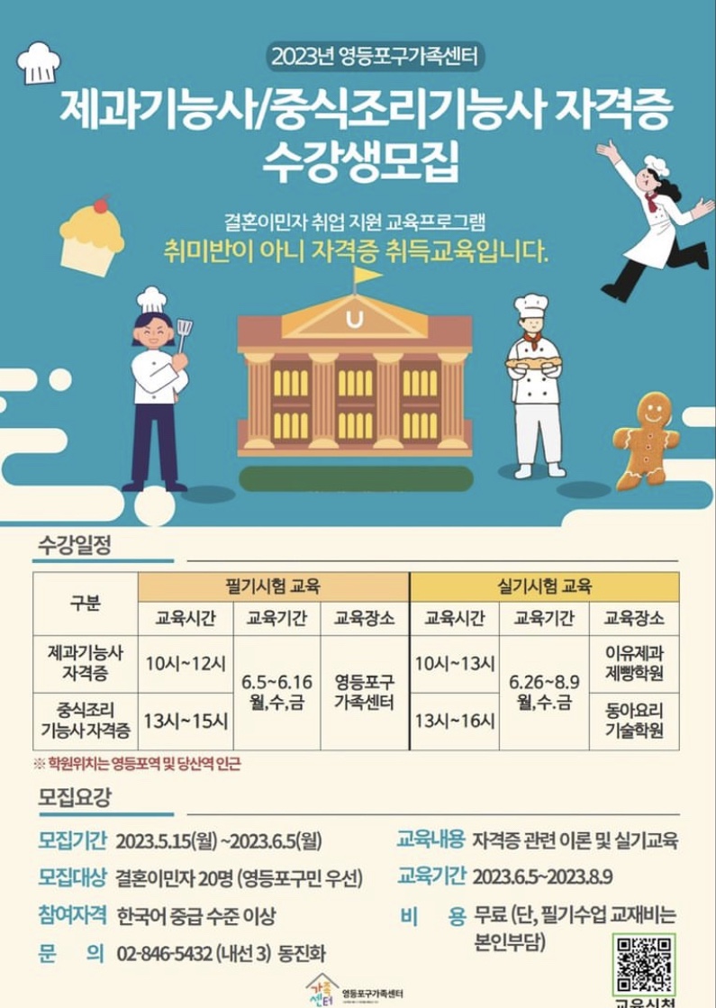 [영등포구 가족센터] 2023 제과기능사/중식조리기능사 자격증 수강생모집