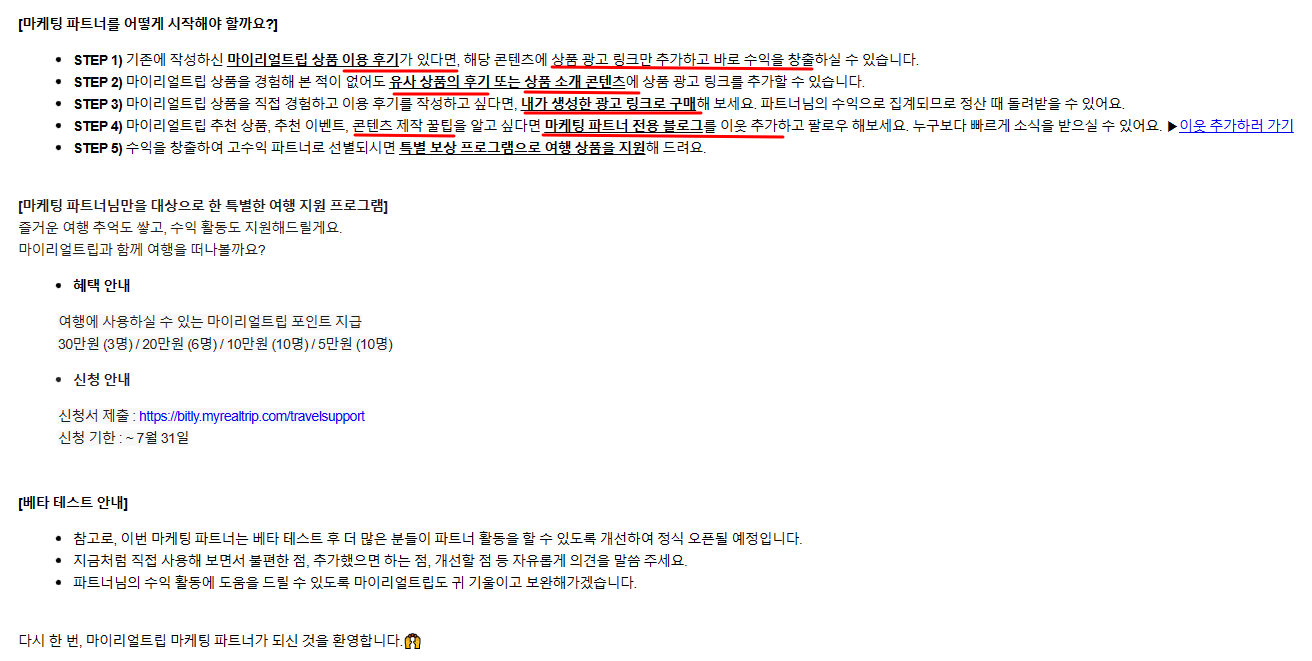 마이리얼트립 마케팅 파트너 가입 승인(베타테스트 기간연장~23.12.31까지)ㅣ포스팅 방법