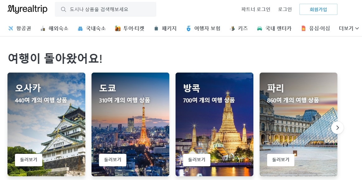 마이리얼트립 홈페이지에 접속하니