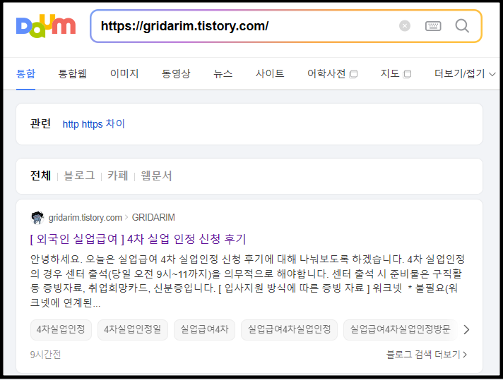 [ 다음 티스토리 블로그 정상 상태 ]