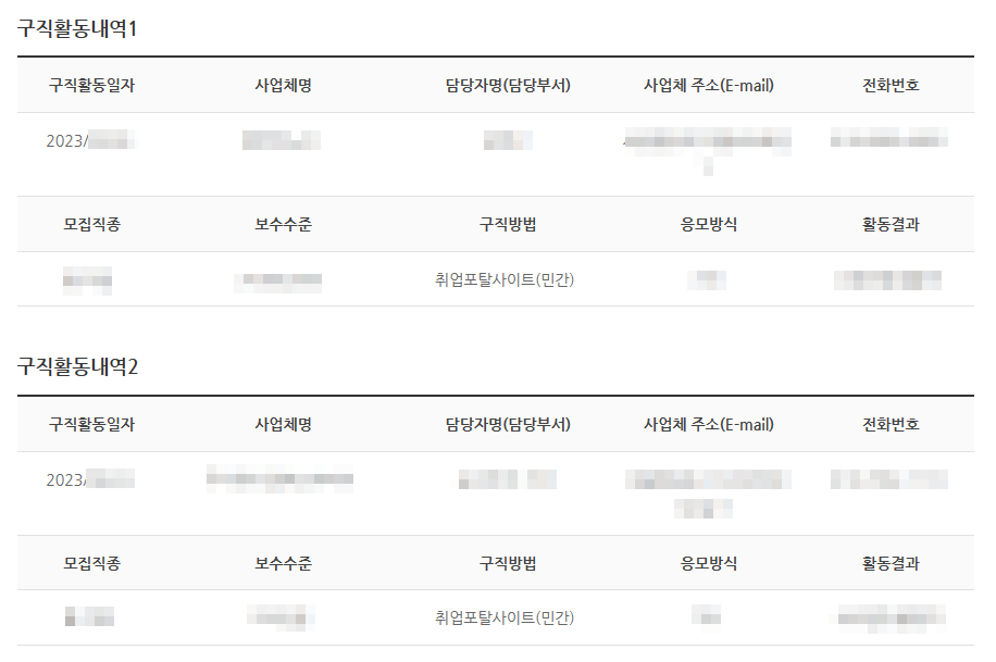 구직활동내역 2건을 제출하였습니다.