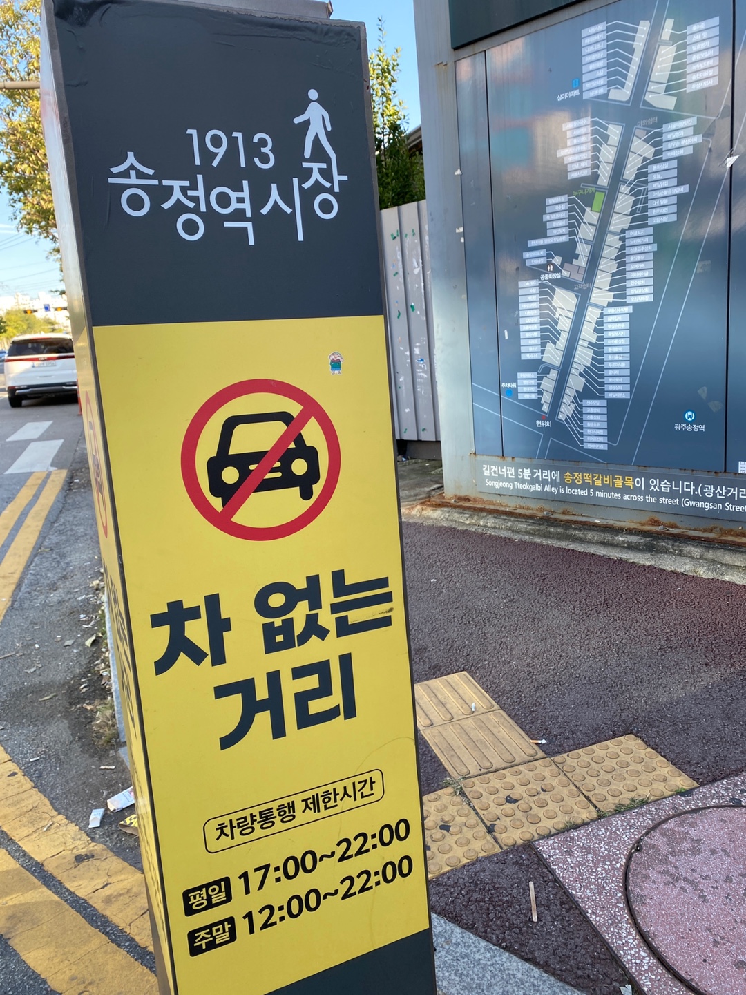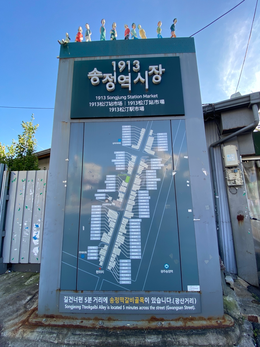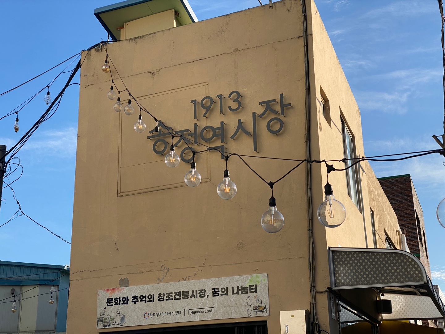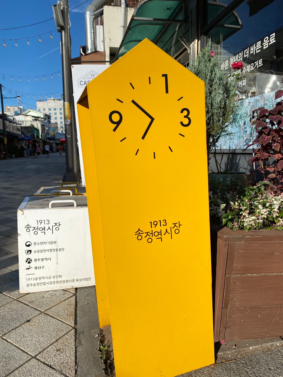 1913 송정역시장 간판을 볼 수 있습니다.
