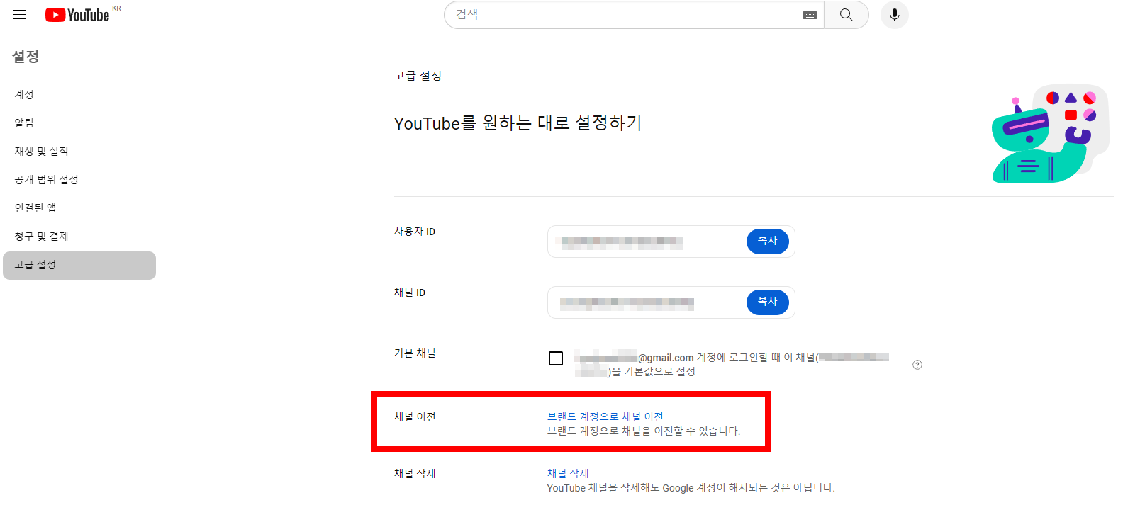 유튜브 개인 계정에서 브랜드 계정으로 채널 이전하는 방법