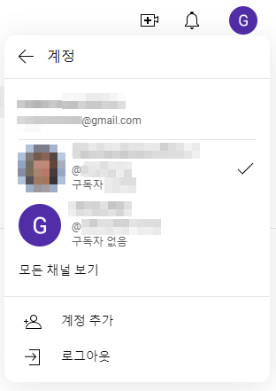 계정을 옮길 때에는 반드시 개인 채널이 선택된 상태에서 이전을 진행해야 합니다. 이걸 확인하는 방법은 프로필을 누른 다음 가장 상단을 확인해서 개인계정으로 접속되어 있는 상태인지를 확인합니다.