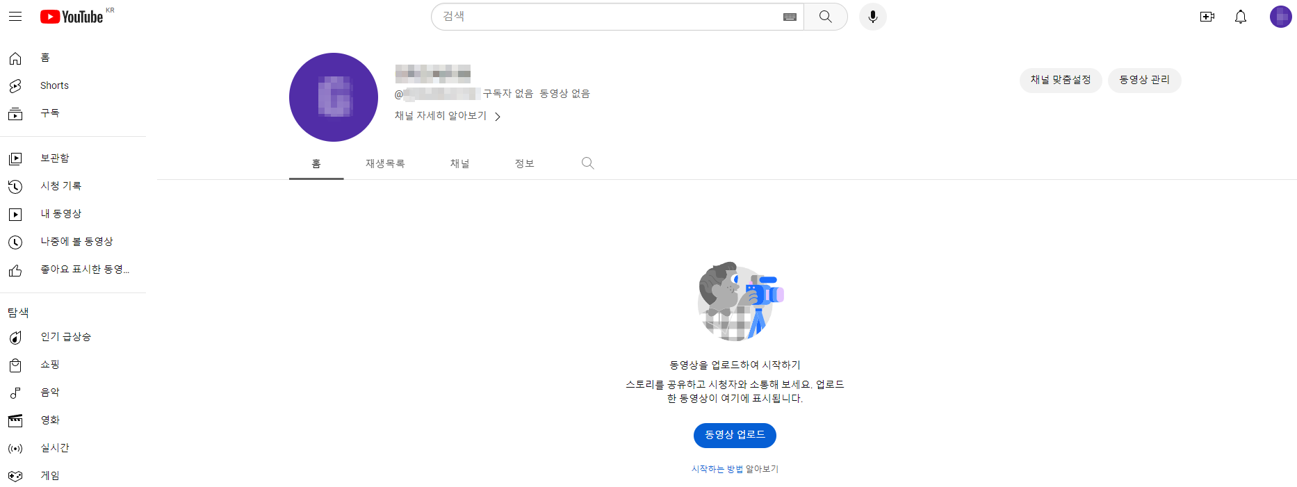 화면 중앙에 '채널 관리자'가 표시된다면 관리자 계정이고 그렇지 않다면 개인 계정입니다.