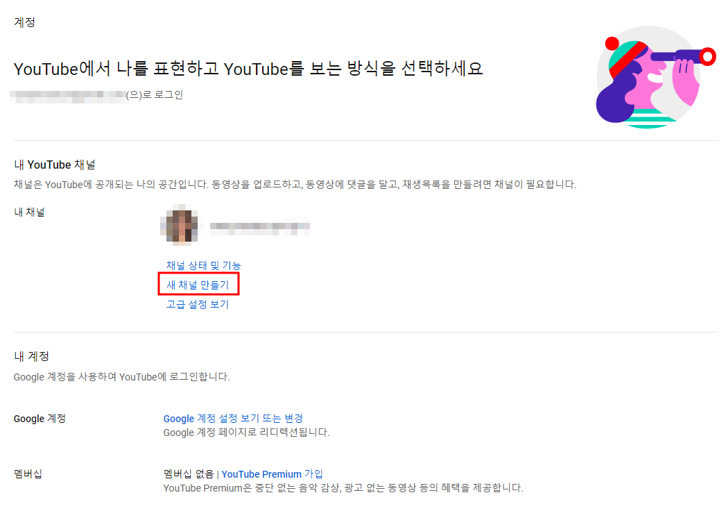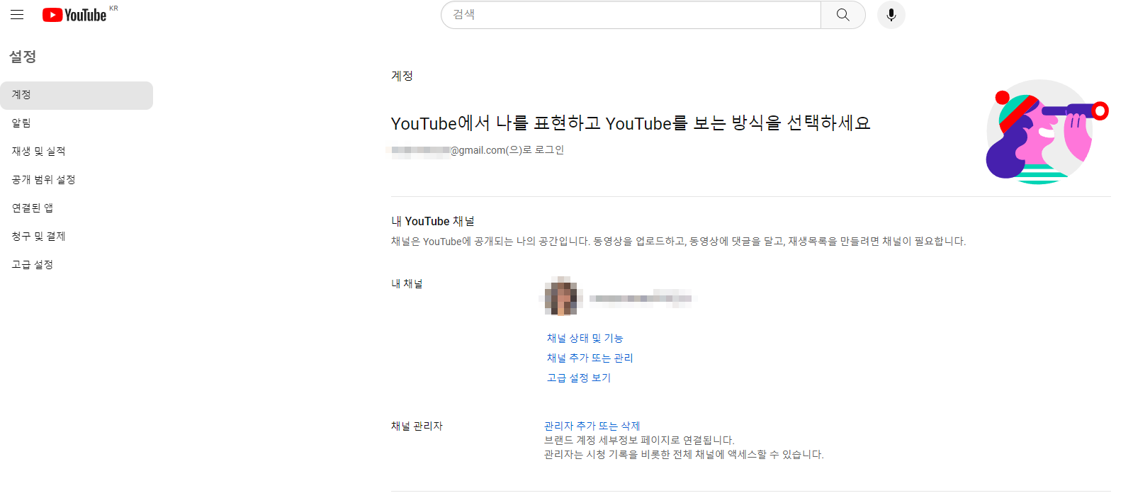 먼저 개인채널을 브랜드 채널로 이전하려면 현재의 개인 계정을 옮겨 받을 브랜드 계정이 하나 있어야 합니다.