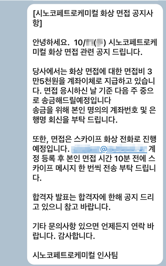 시노코페트로케미컬 면접 후기 (화상면접, 면접질문, 면접비)